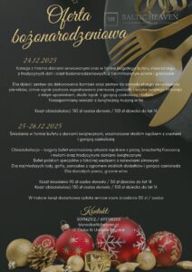 Menu Baltic Heaven to starannie skomponowana podróż przez różnorodne smaki – od nowoczesnych interpretacji klasycznych dań, po autorskie kompozycje inspirowane sezonowością i lokalnymi produktami. Każdy posiłek to połączenie finezji, estetyki i dbałości o detale, które sprawia, że każda wizyta staje się wyjątkowym doświadczeniem kulinarnym.